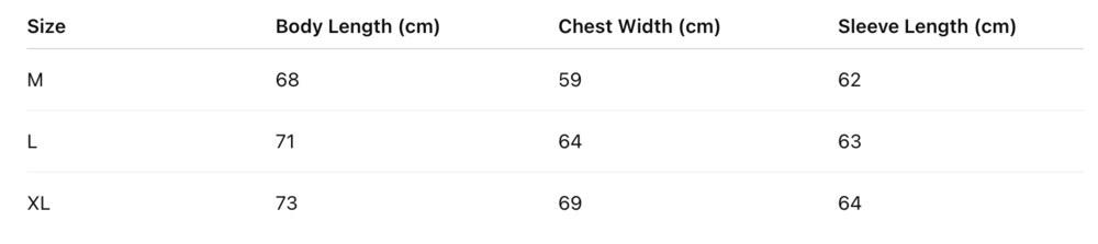 M Length 68 / Chest 59 / Sleeve 62
